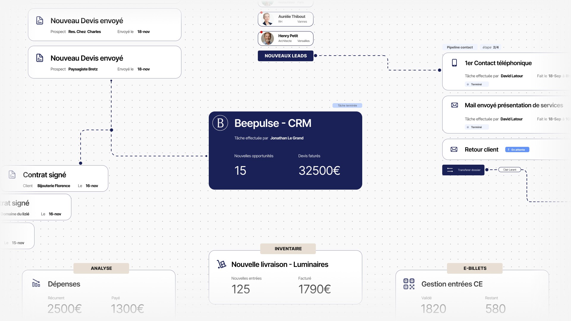 Le module CRM de BeePulse centralise toutes vos interactions commerciales :