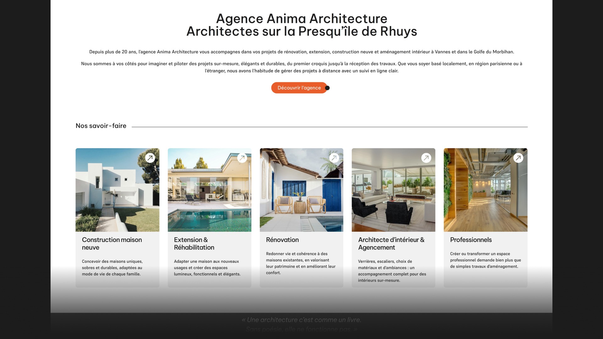 Notre mission : créer un univers graphique clair, un site internet sobre, lumineux et maîtrisé, qui raconte la méthode d’Anima tout en donnant de la place aux projets et aux lieux.