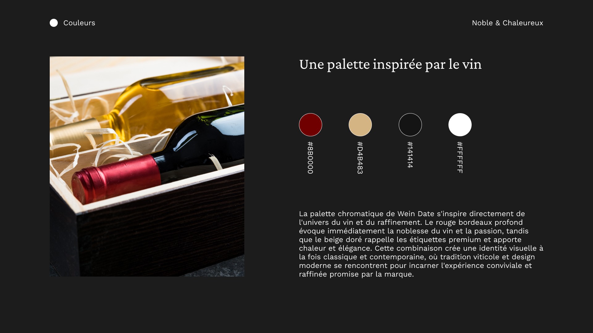 Le projet a débuté par la création du logo et de la charte graphique de Wein Date :