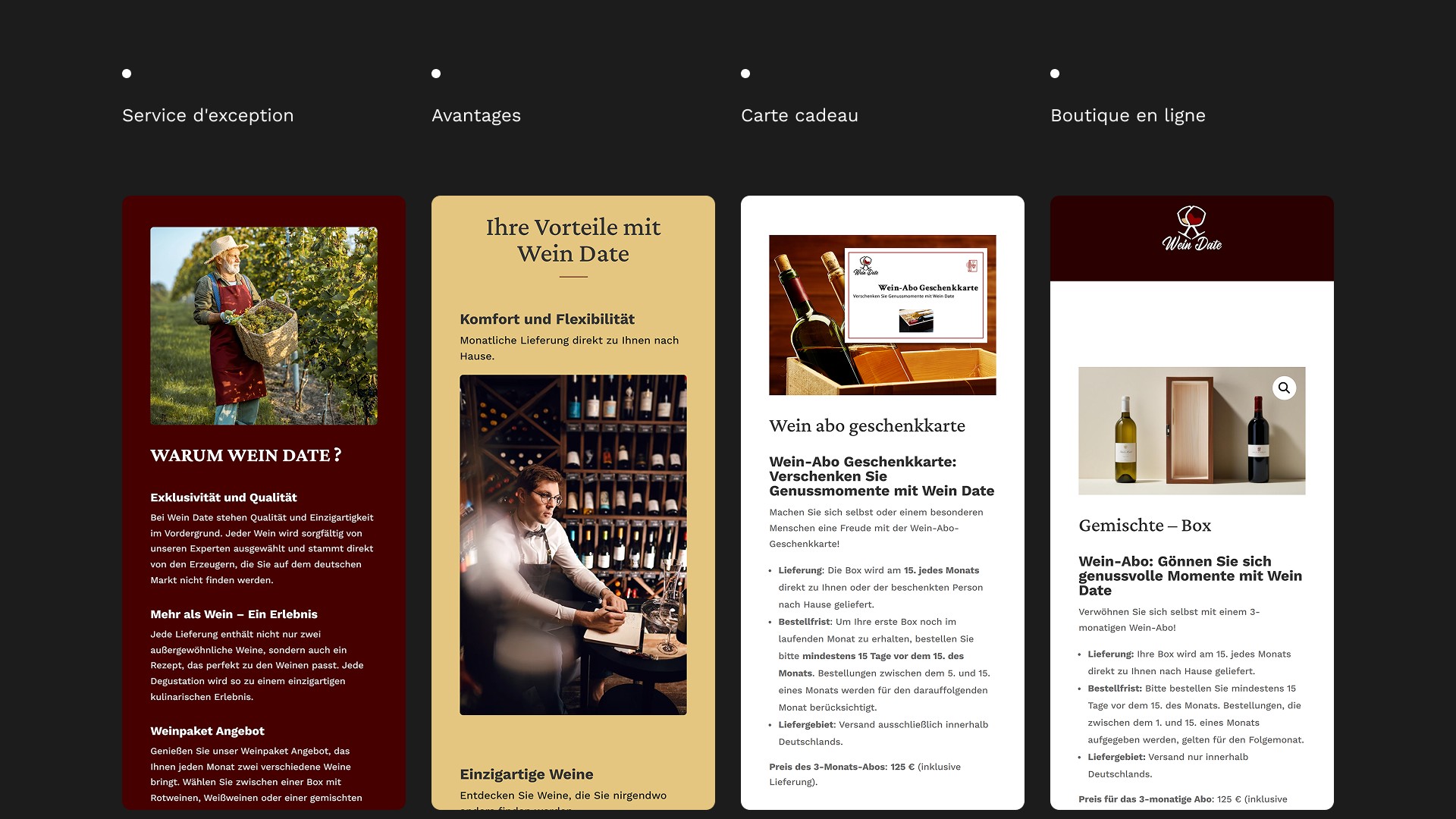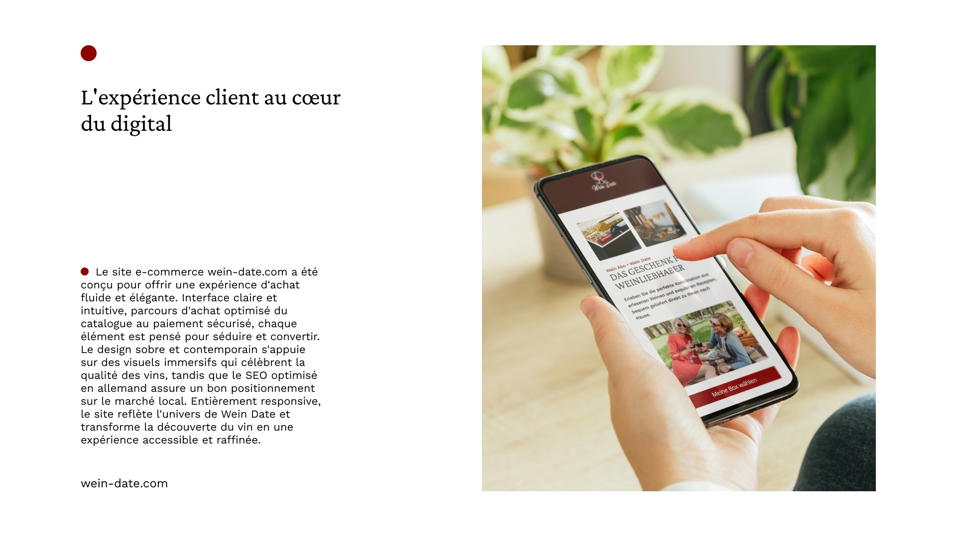 Le site wein-date.com a été conçu comme une boutique en ligne performante et responsive, avec :