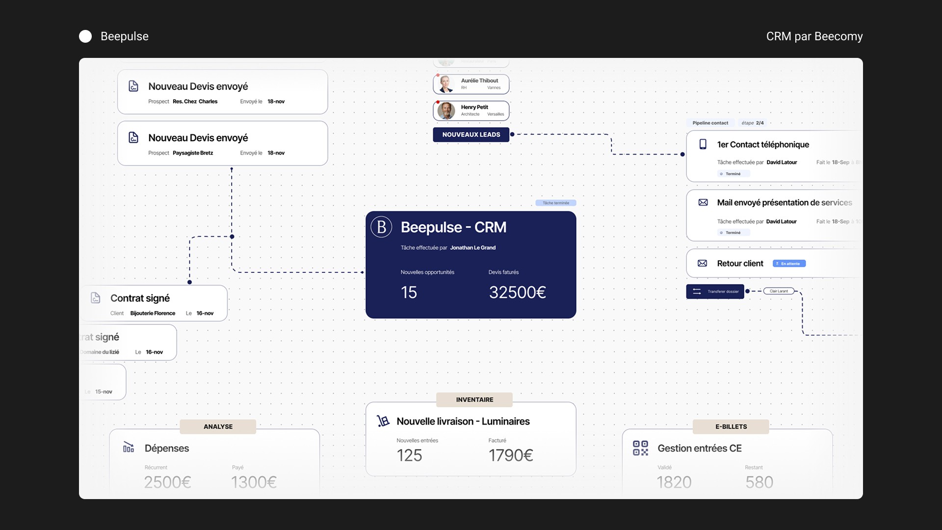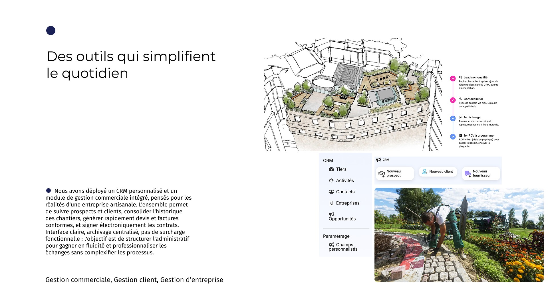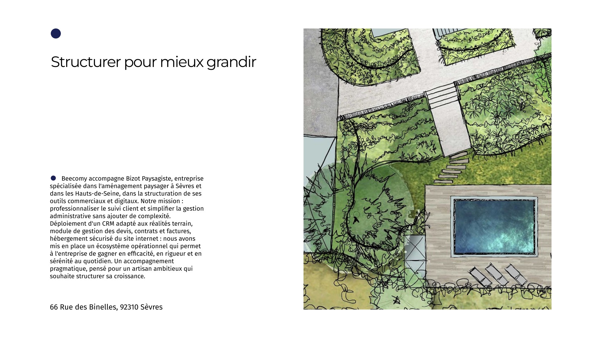 Nous avons déployé une version personnalisée du CRM Beecomy pour permettre à Bizot Paysagiste de :
