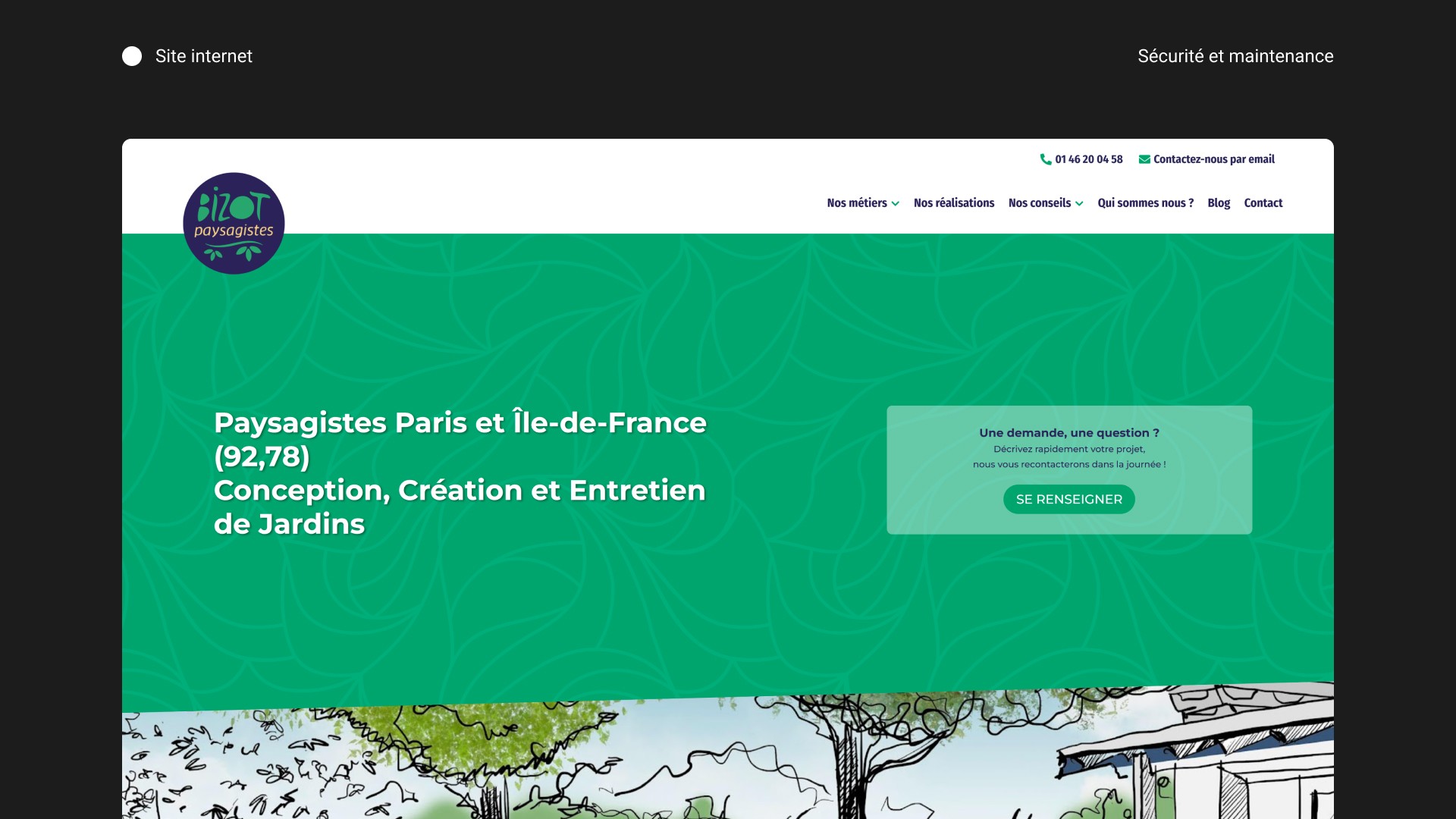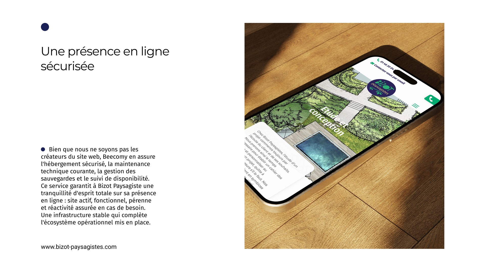 Ce service garantit à Bizot Paysagiste une tranquillité d’esprit sur sa présence en ligne, tout en gardant le site actif, fonctionnel et pérenne.