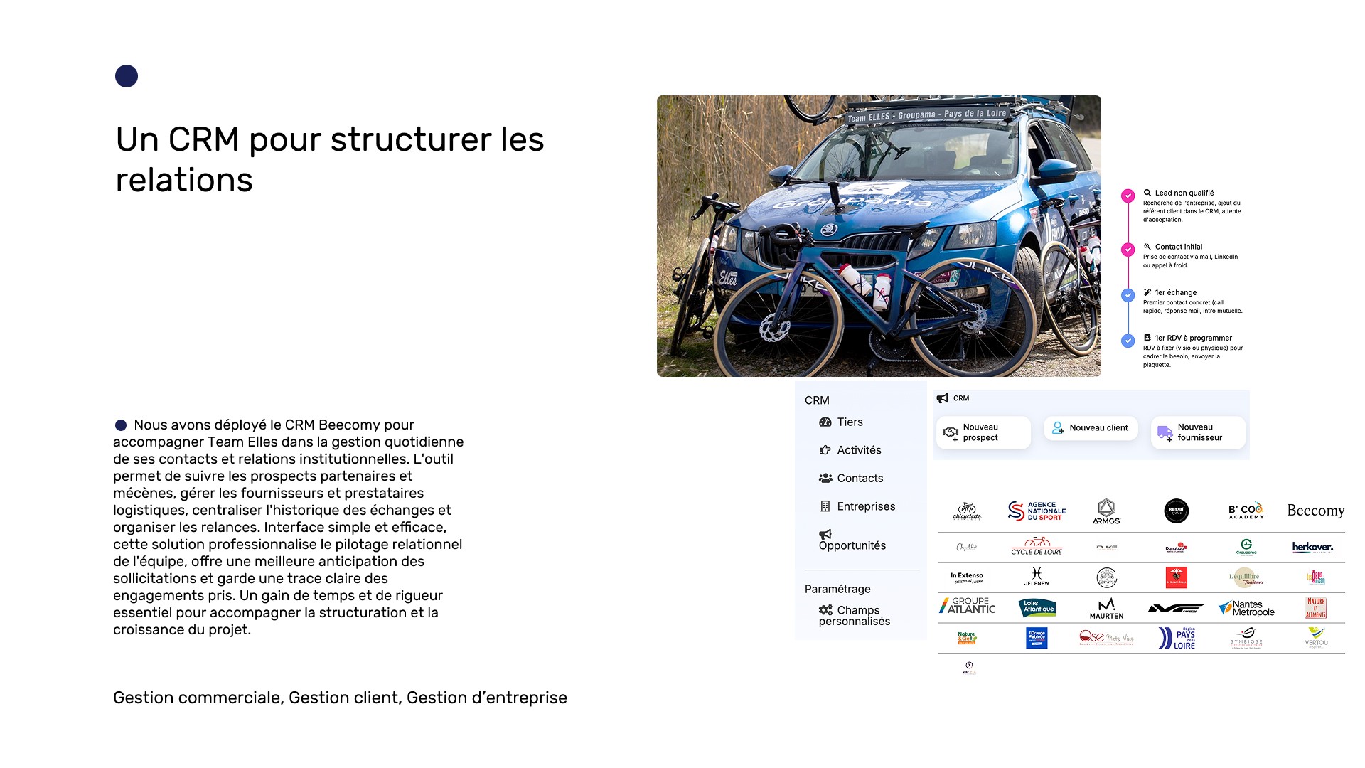 En parallèle du site, nous avons mis en place le CRM Beecomy, pour accompagner Team Elles dans la gestion quotidienne de ses contacts et relations institutionnelles :