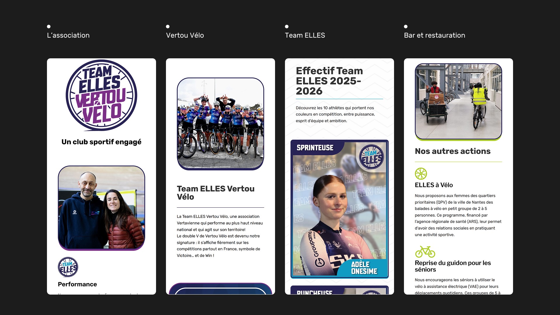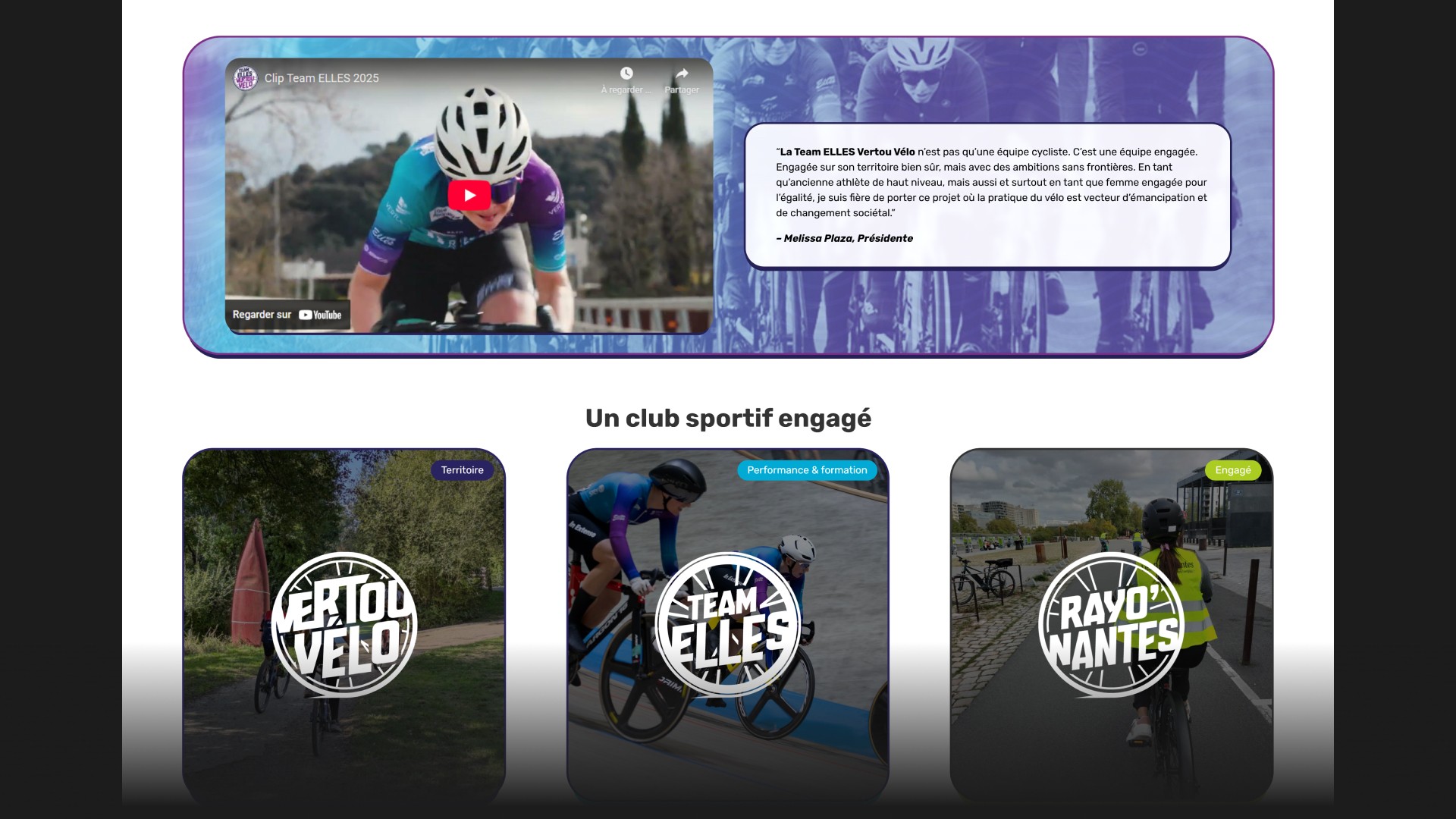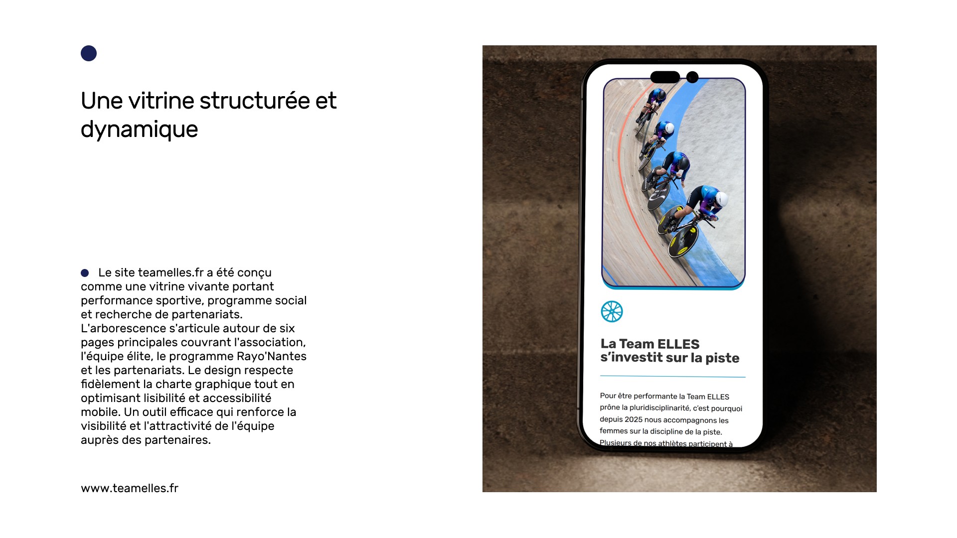 Le site teamelles.fr a été conçu comme une vitrine vivante, capable de porter les différentes dimensions du projet : performance sportive, programme social, communication institutionnelle, recherche de partenaires.